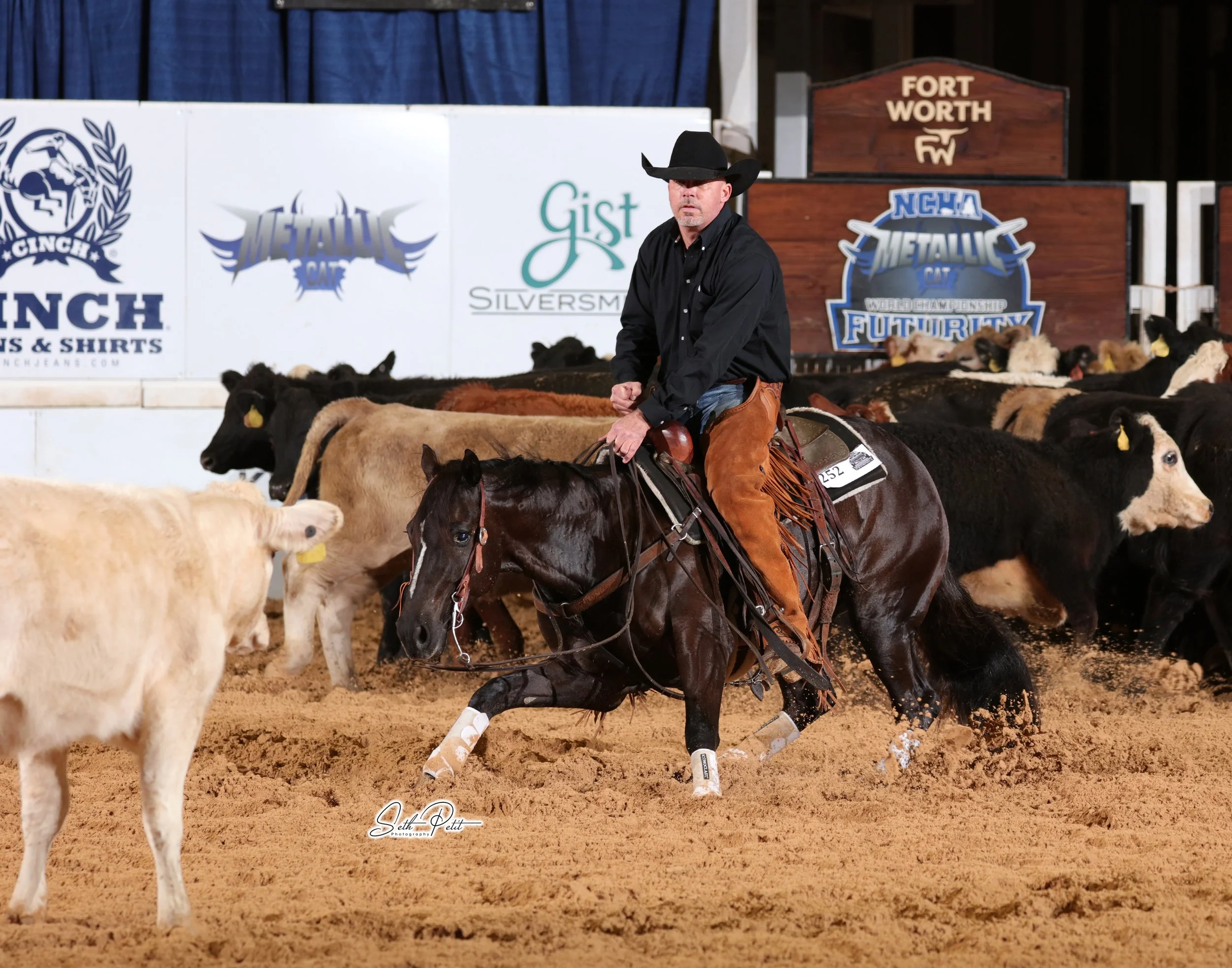 Deep Eddyy (Thunder x Black Magic Cat by WR This Cats Smart) with Jason Clark on board at the 2022 NCHA Futurity.